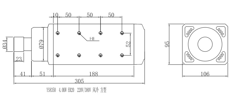 YS8350(4.0KW-ER20-220V-380V 方型风冷电机)