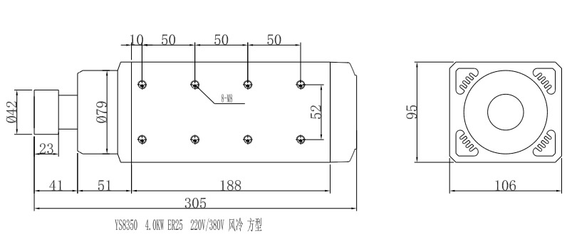 YS8350B(4.5KW-ER25-220V-380V 方型带边风冷电机)