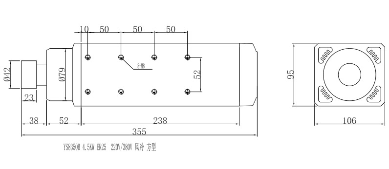 YS8350B(4.5KW-ER25-220V-380V 方型风冷电机)