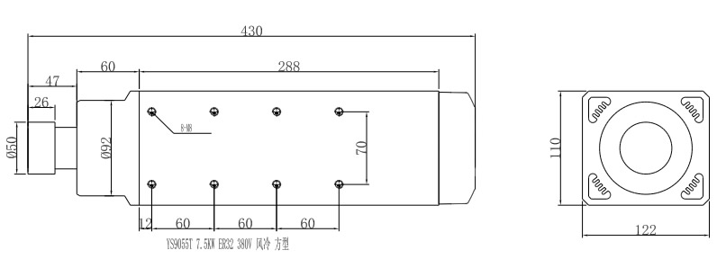 YS9055T(7.5KW-ER32-380V 方型风冷电机)