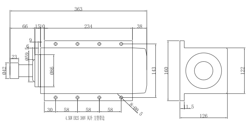 4.5KW-ER25-380V 方型带边风冷电机