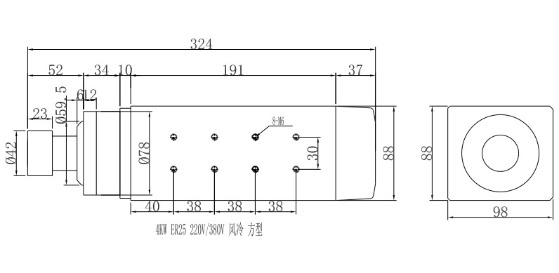 4KW-ER25-220V-380V 方型风冷电机