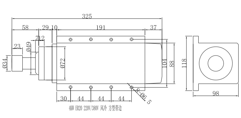4KW-ER20-220V-380V 方型带边风冷电机