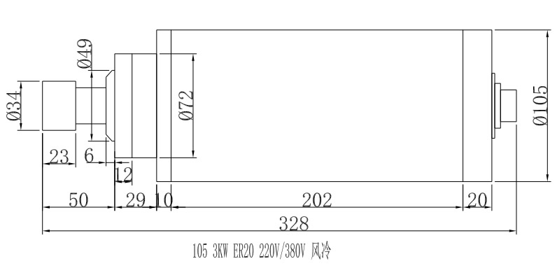 Φ100-3KW-ER20-220V-380V 风冷电机
