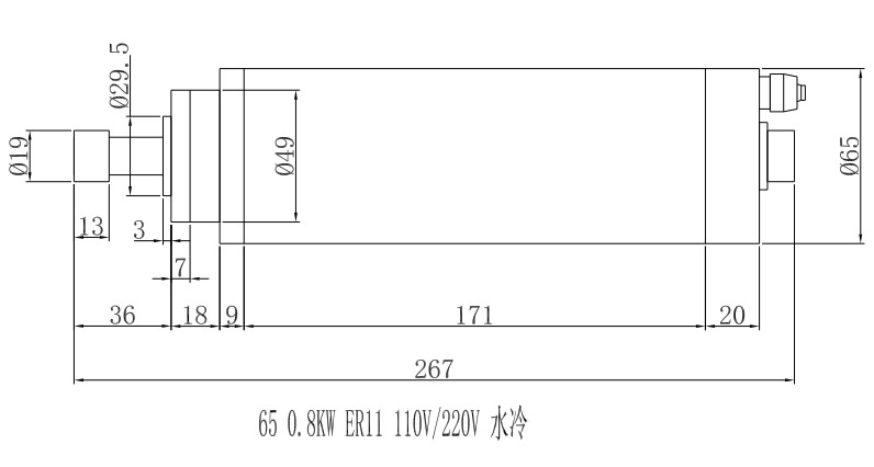 Φ65-0.8KW-ER11-110V-220V 水冷电机