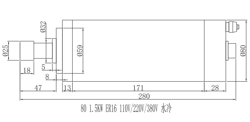 Φ80-1.5KW-ER16-110V-220V-380V 水冷电机