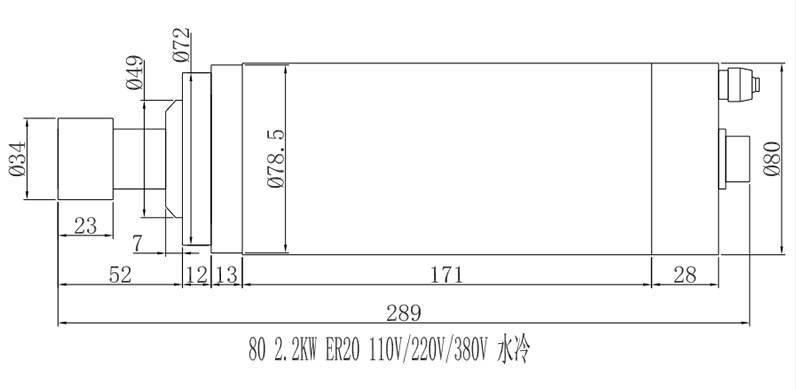 Φ80-2.2KW-ER20-110V-220V-380V 水冷电机